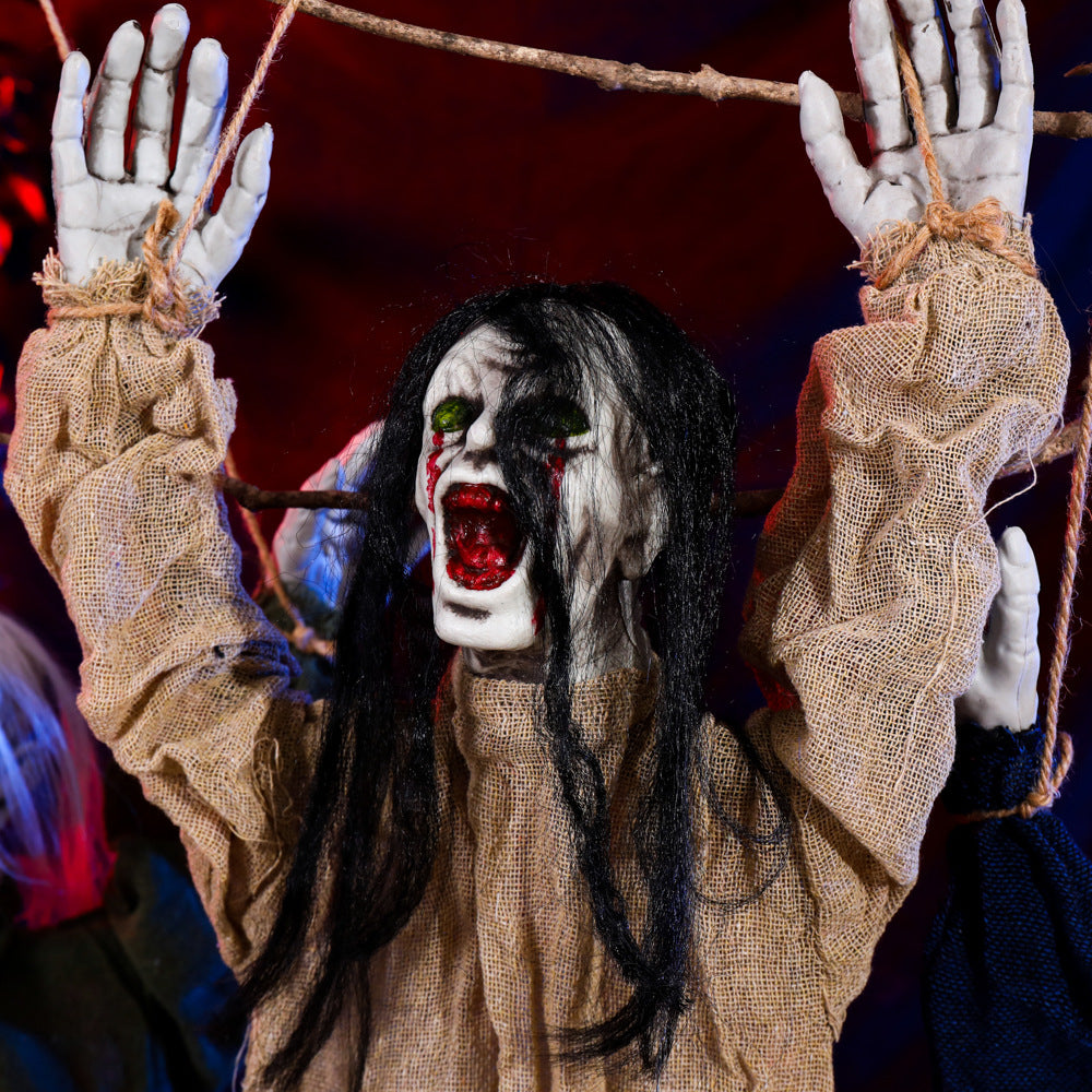 Intricately detailed ghost figure that appears realistically “tied up” for a spine-tingling effect