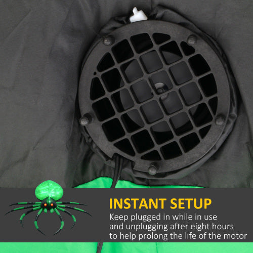 Specification Product Information Item Code:W2225P229713 Product Type :Single Box Product Product Name:HOMCOM 6' Halloween Inflatable Outdoor Decoration Spider, Blow Up LED Yard Decor for Garden, Lawn, Party, Holiday, Waterproof Main Color:Green Main Material:Polyester Product Dimensions Assembled Length (in.):71.80 Assembled Width (in.):74.80 Assembled Height (in.):19.80 Product Weight (lbs.):1.70 Package Size Length (in.):7.90 Width (in.):7.90 Height (in.):4.70 Weight (lbs.):2.00 Product Features You and your neighbors are going to freak at this green crawling spider Halloween decoration. This is going to bring your outdoor holiday madness to new heights and provide days of enjoyment to those onlookers. Built-in LEDs are going to ensure that your inflatable is visible from here to Transylvania (okay, maybe not that far, but it's still super-bright). These lights will illuminate every last spooky detail, taking your yard to a new level of scary. For those more temperamental Halloweens, you're still going to want to scare the pants off your neighbors. Included two stakes, two drawstrings, and a sandbag to keep your Halloween party decoration from turning into a parachute in the almost-likely event of a windy night. To inflate: Step 1 - Plug it in and turn the power on. Step 2 - Done. For real, it's that easy. Unplug it, the crawling spider deflates. It seriously takes you longer to negotiate your trick-or-treater's candy. Halloween Spider Dimensions: 71.75" W x 74.75" D x 19.75" H. Includes two ground stakes, two drawstrings and a sandbag.